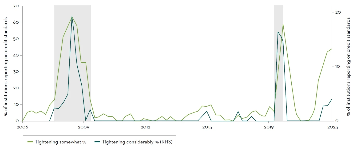 With the banking failures in the US regional banks in March and April, we highlighted at the time that credit lending conditions tightening could be a risk to watch out for, given that it would be the transmission mechanism that could lead to higher risk for the US economic activity. In this month’s insights, we zoom in on the latest credit lending conditions, with the latest datapoint coming through in early May.