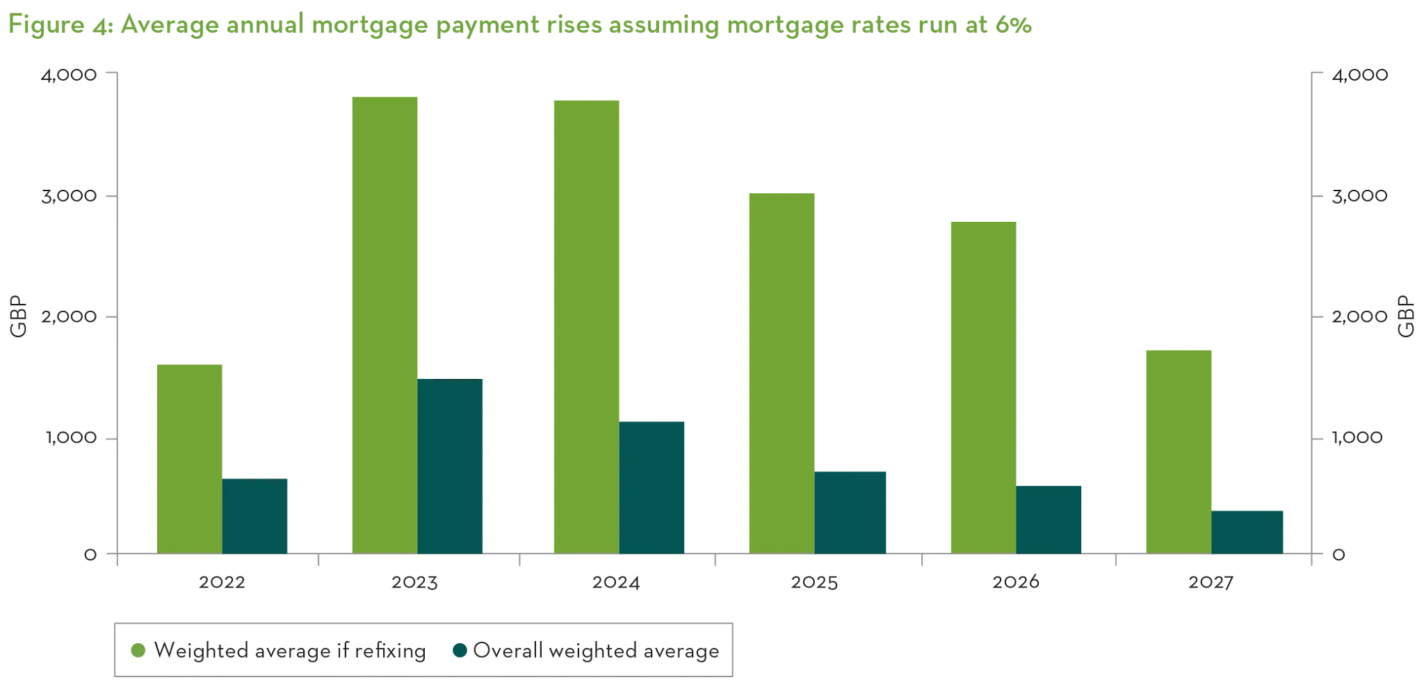 Indeed, the majority of UK mortgages are financed on 5-year fixed rates. The message here is that an interest rate shock takes its time to feed through to the UK consumer (figure 4), and the structural characteristics of the UK housing market (limited supply, rising rents, strong wage growth) provides some protection against an immediate collapse in real property prices.
