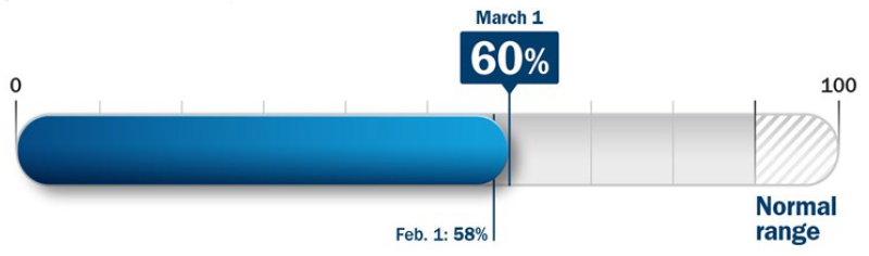 Figure 3: The Return to Normal Index over time – level as of 1 March: 60%