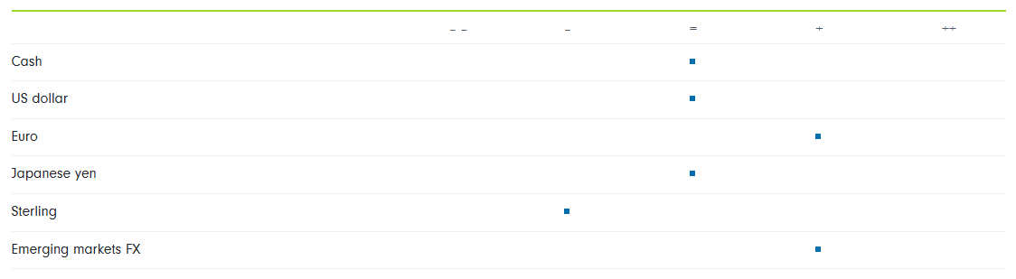 - Emerging market bonds in certain markets continue to look attractive given elevated yields and should also benefit from a weaker dollar over the medium term.