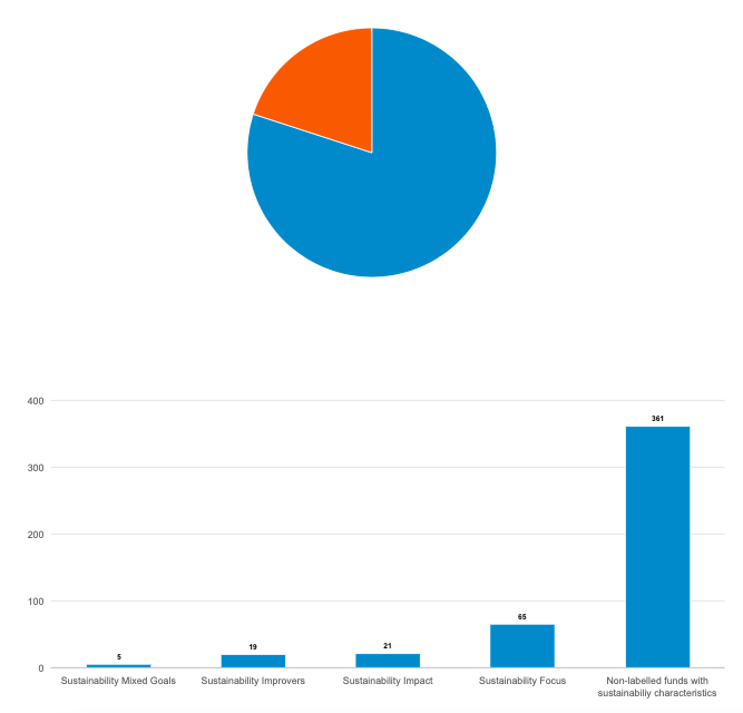 Instead, the largest category became unlabelled funds with ESG characteristics. These could not apply a sustainability label or use sustainability words in their names but had to provide similar consumer-facing disclosures as those required for labelled funds.