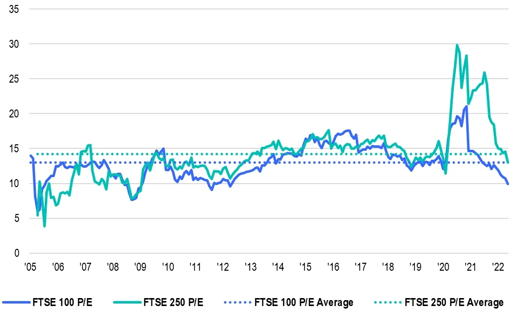 With market movements being more top-down and macro-data driven, and many investors overlooking company fundamentals right now, we’re starting to see many interesting opportunities emergewhere we believe the risk/reward is being tilted in our favour. The FTSE 250 has been trading below its long-term average, with its 12-month forward price/earnings (P/E) ratio currently estimated at 13 times, which is below its long-term average of around 14.4