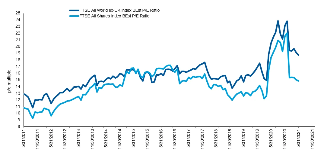 FTSE All Shares Index Vs. FTSE All World ex-UK Index Forward P/E