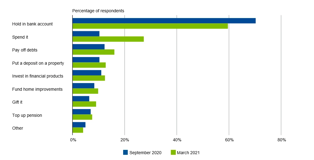 Despite these risks, we believe the UK consumer is well-capitalised to abate rising energy prices and interest rates. Through the pandemic, consumers have built up savings which are yet to be deployed. A BoE survey (see below) indicated that the majority of investors plan to continue holding onto their savings in the short term, but we expect to see this money flow back into the economy through the remainder of 2021 and into 2022.