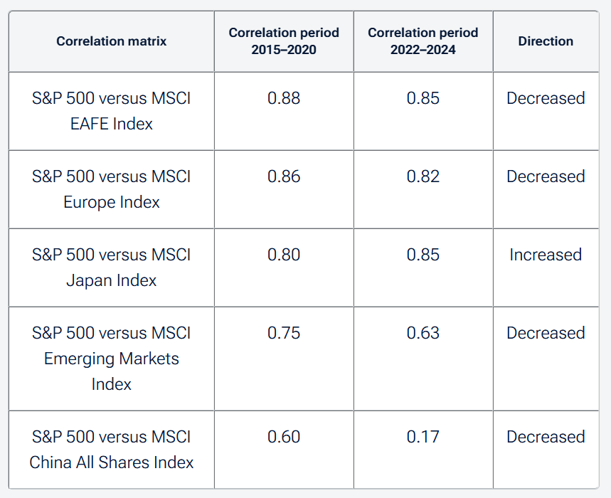 Recognizing these global linkages is crucial for investors. They explain not only the durability of U.S. market leadership but also where new opportunities may emerge. Broadening the investable universe—particularly into non‑U.S. and emerging markets—can restore diversification benefits that have become more limited, enhance active share, and position portfolios to potentially capture excess returns beyond concentrated U.S. benchmarks.