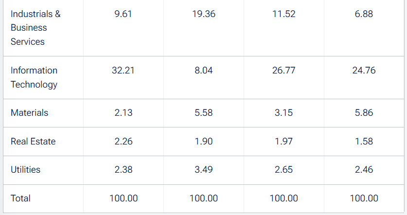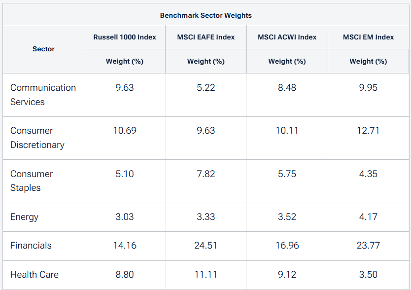 (Fig. 3) Sector concentration at a glance: Key differences across leading equity indices